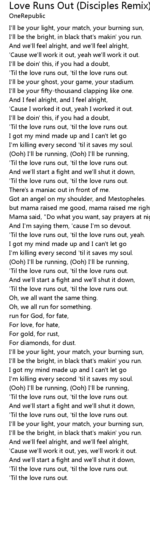 'Til the love runs out, 'til the love runs out. |