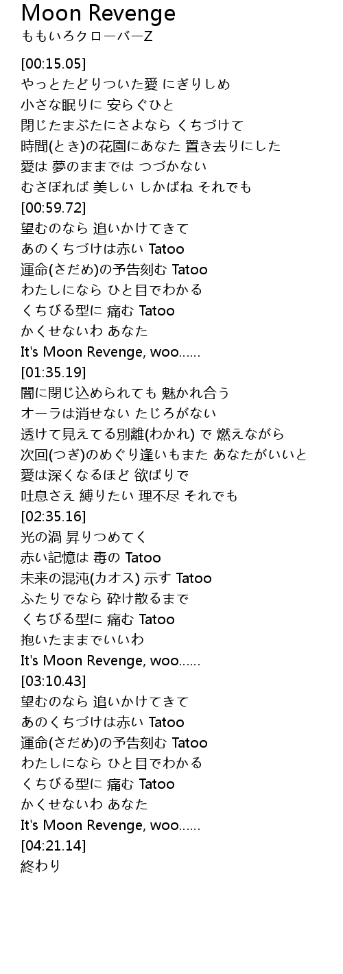 | [04:07.62] | It's Moon Revenge, woo…… |