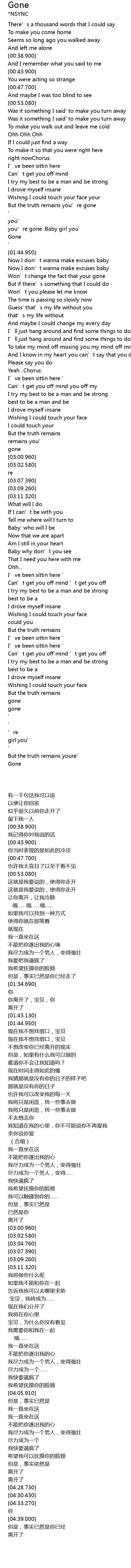 | [01:42.500] | Gone |