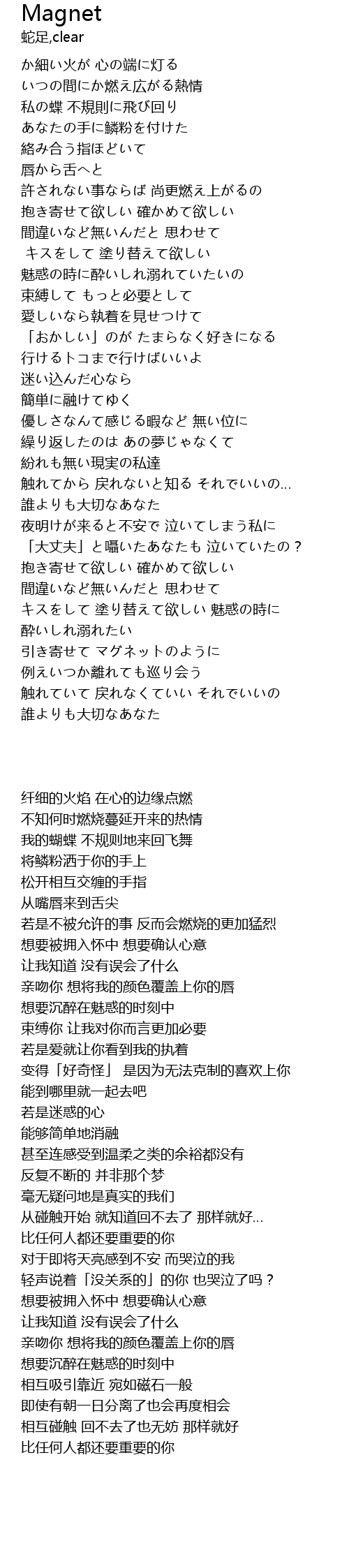 | [03:06.450] | キスをして 塗り替えて欲しい 魅惑の時に |