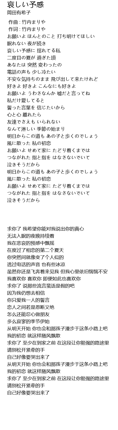 哀しい予感に 揺れてる私 |