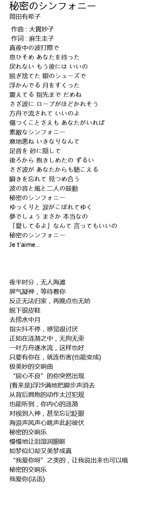 | [02:51.17] | さざ波が あなたからも聴こえる |