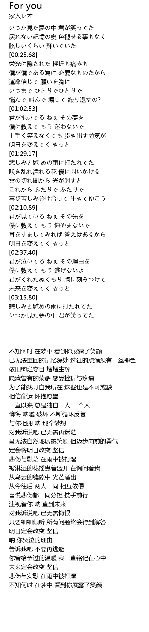 | [00:39.27] | 運命信じて 願いを胸に |