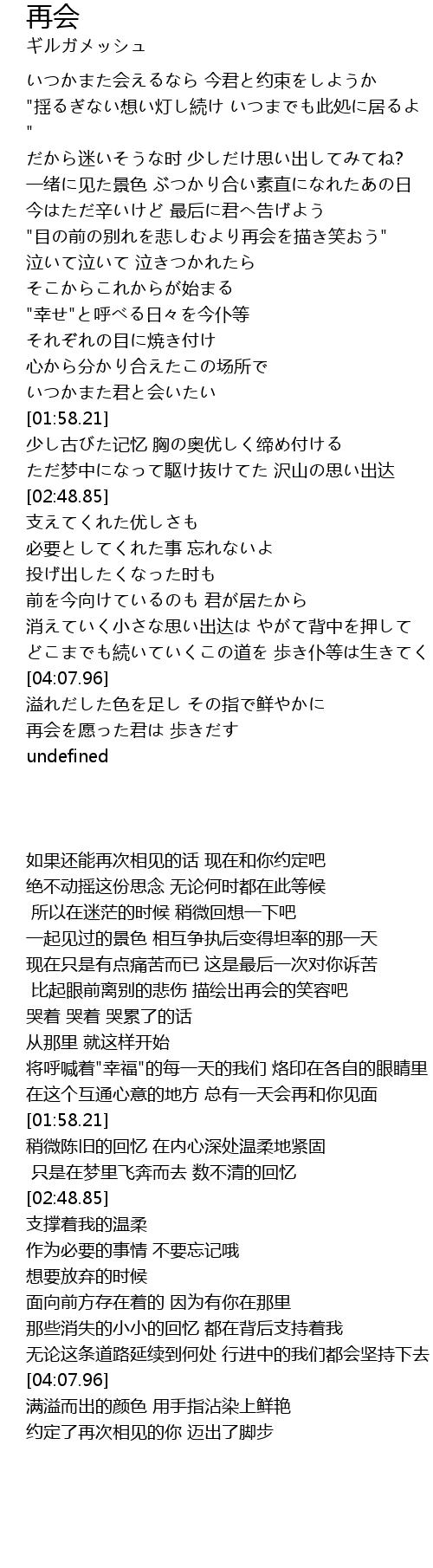 | [04:46.35] | 再会を愿った君は 歩きだす |