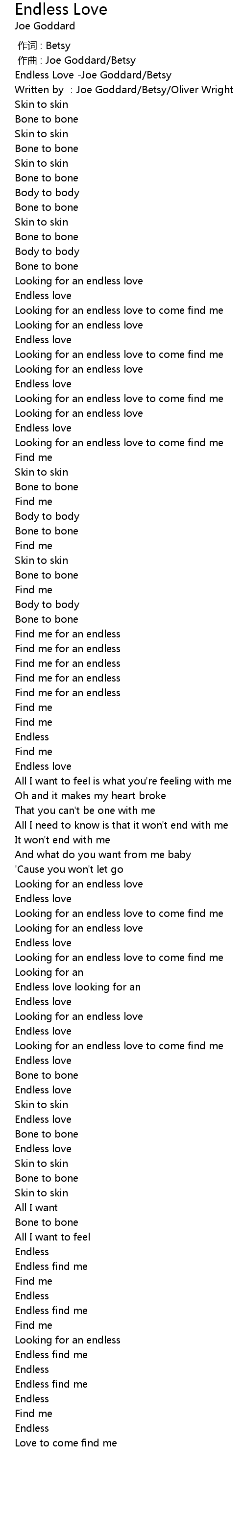 | [00:00.111] | Endless Love Joe Goddard Betsy |