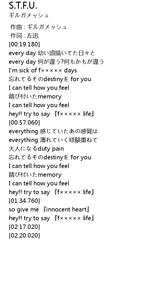 | [00:54.010] | hey!! try to say 『f××××× life』 |