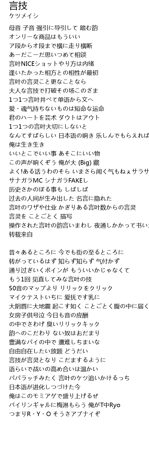 | 言叶の言灵こと更なことなら 大人な言技で打破その场このざま | |
