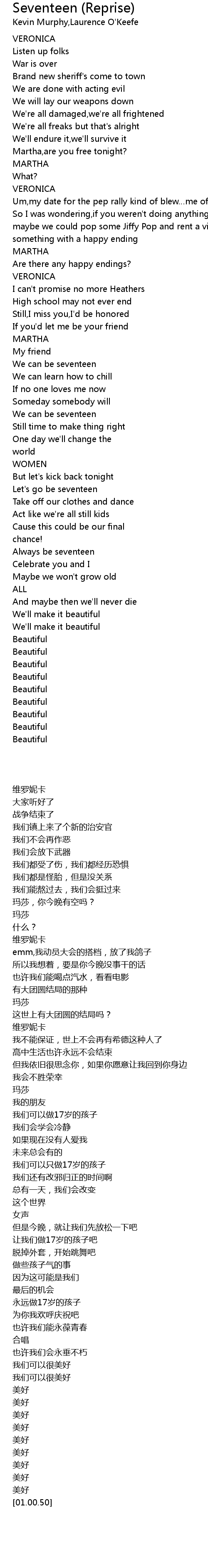 | [01:20.40] | We can be seventeen |