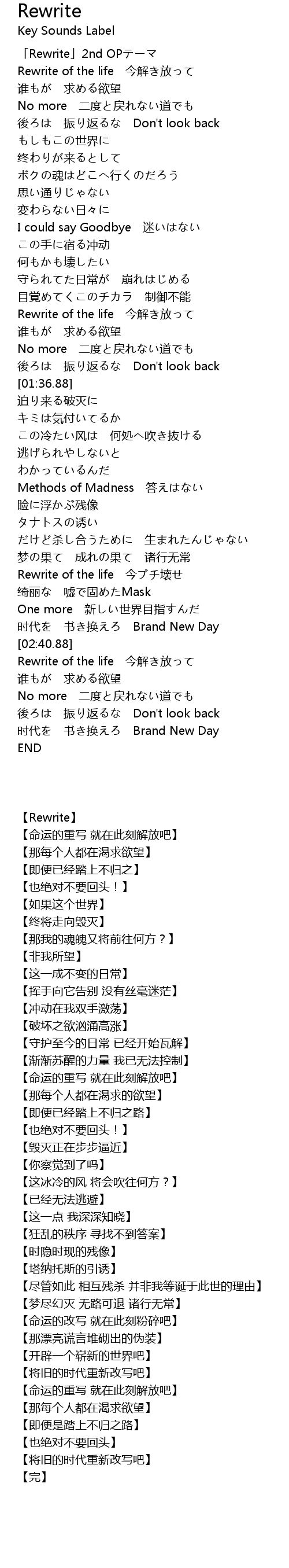 | [02:19.31] | Rewrite of the life 今ブチ壊せ |