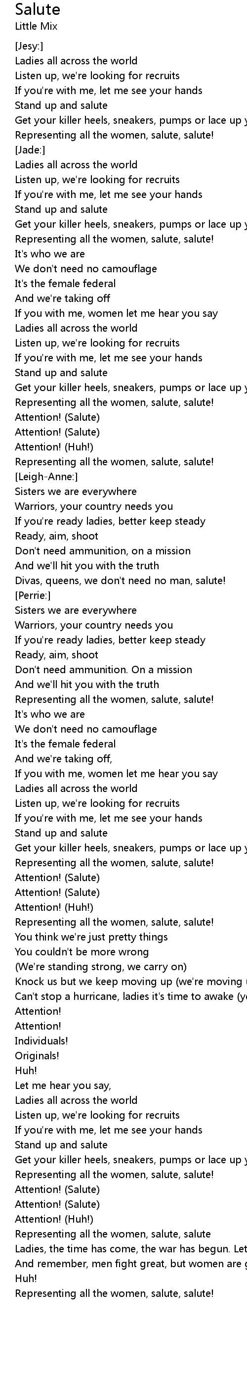 Representing all the women, salute, salute |