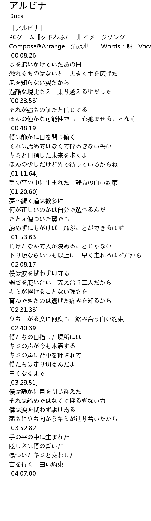 | [00:00.00] | 「アルビナ」 |