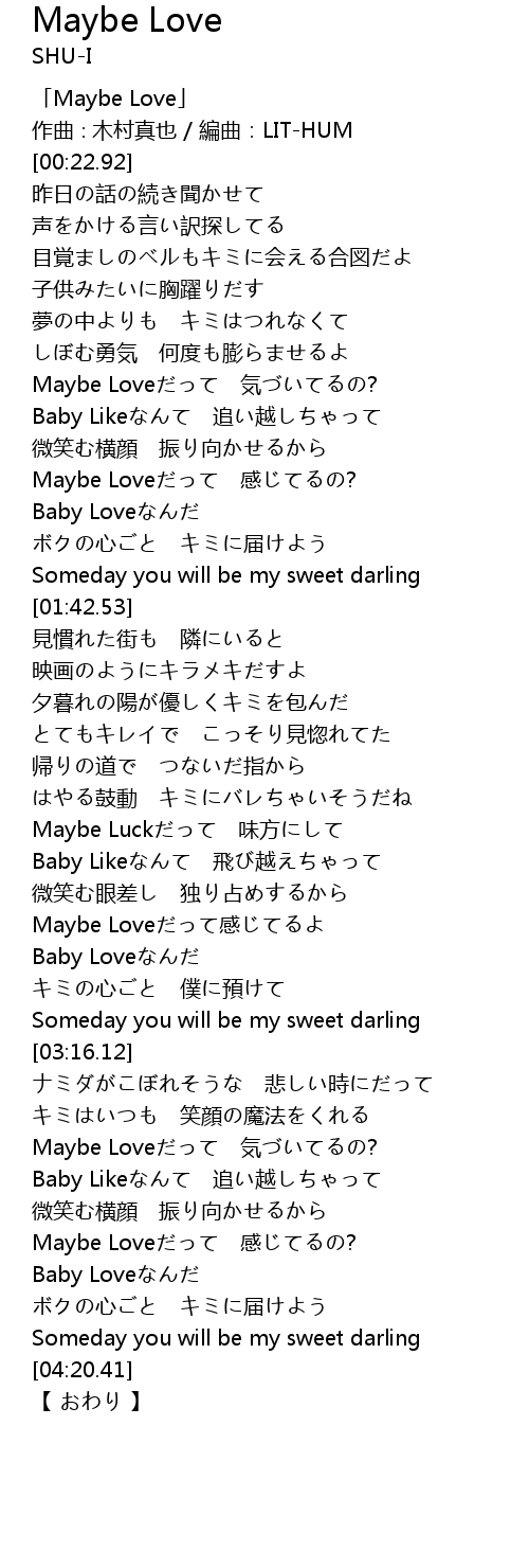 | [04:01.45] | Maybe Loveだって 感じてるの? |