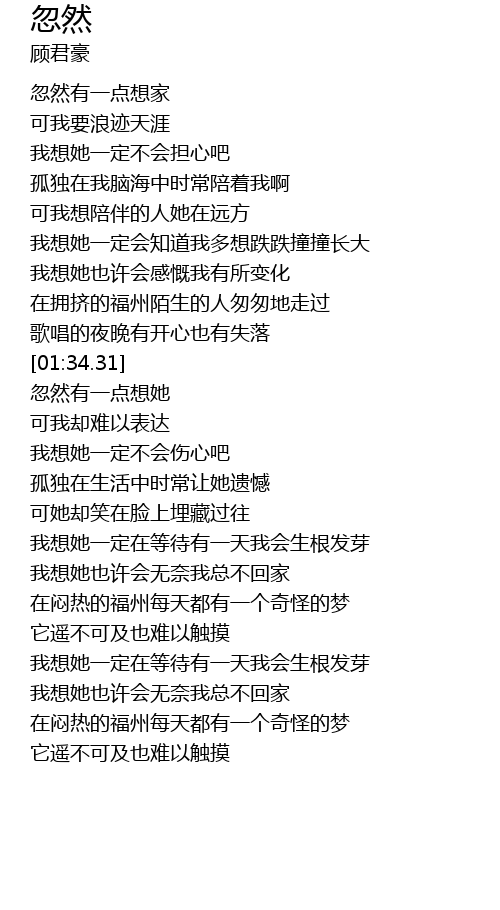 | [01:19.41] | 在拥挤的福州陌生的人匆匆地走过 |