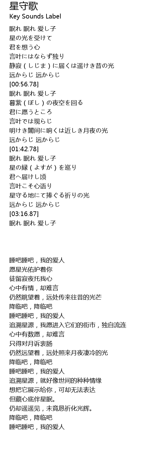 | [02:54.56] | 星守る地にて捧ぐる祈りの光 |