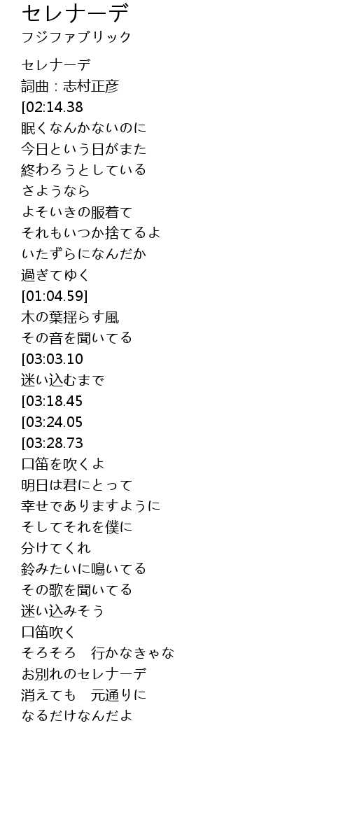 | [01:48.09][03:24.05] | 流れ出すセレナーデ |