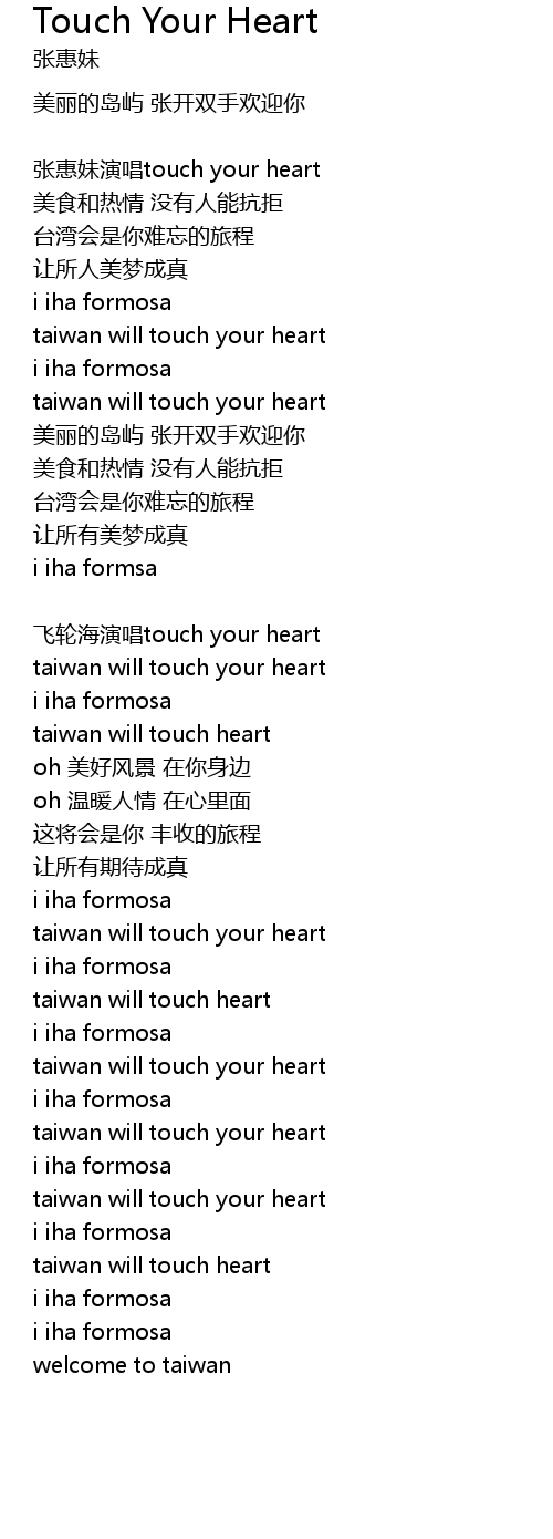 | zhāng huì mèi yǎn chàng touch your heart | |
