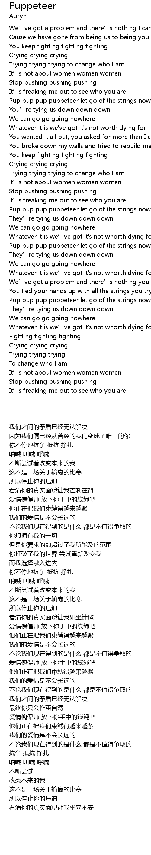 | [00:42.41] | Pup pup pup puppeteer let go of the strings now |