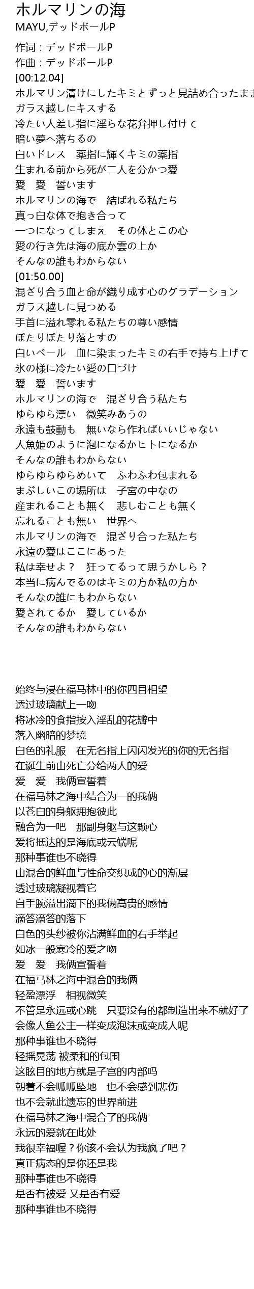 | [02:54.02] | ホルマリンの海で 混ざり合う私たち |