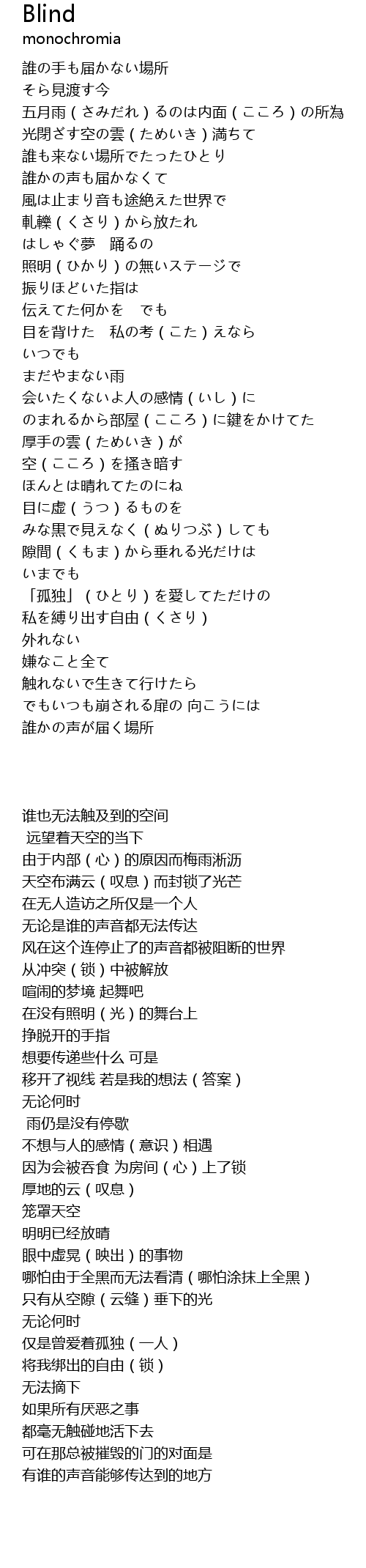 | [01:06.06] | 五月雨(さみだれ)るのは内面(こころ)の所為 |