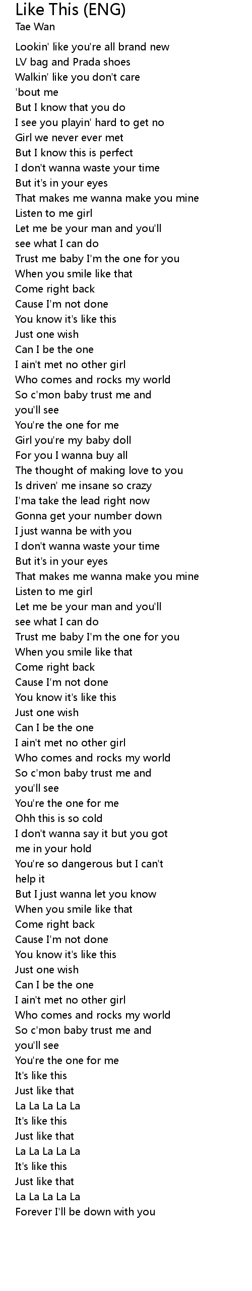 | Trust me baby I'm the one for you | |