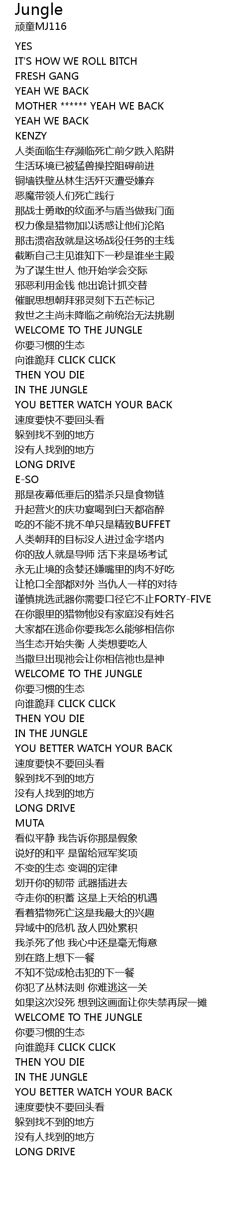 | [03:17.44] | 你犯了丛林法则 你难逃这一关 |