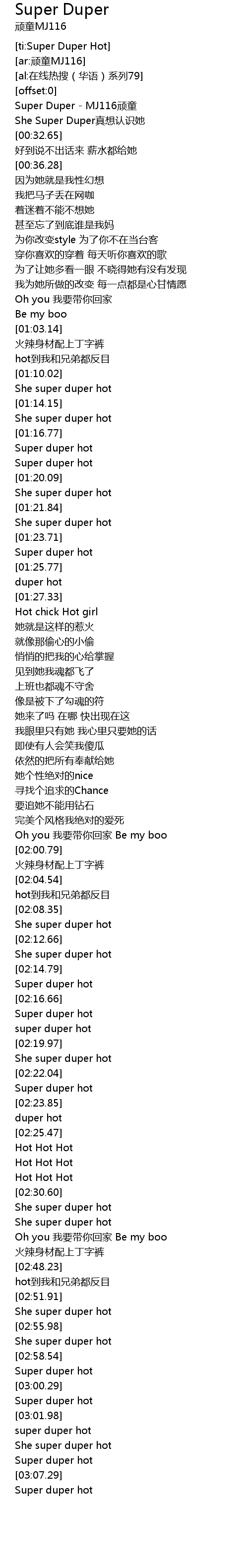 | [00:01.14] | Super Duper MJ116 wán tóng |