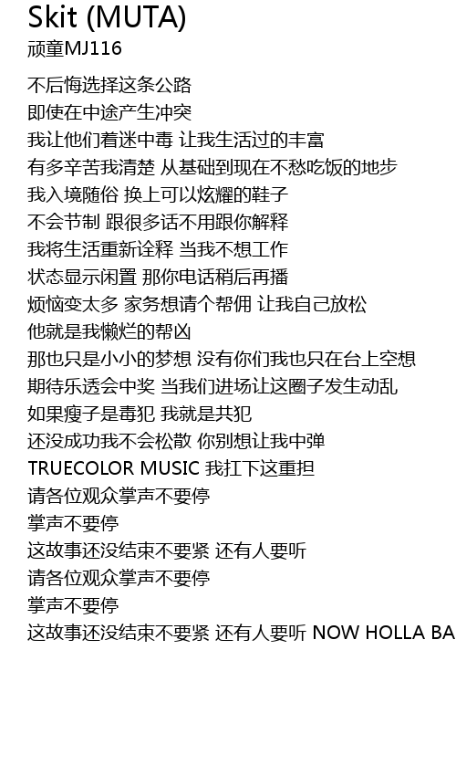 | [01:13.88] | 这故事还没结束不要紧 还有人要听 NOW HOLLA BACK |