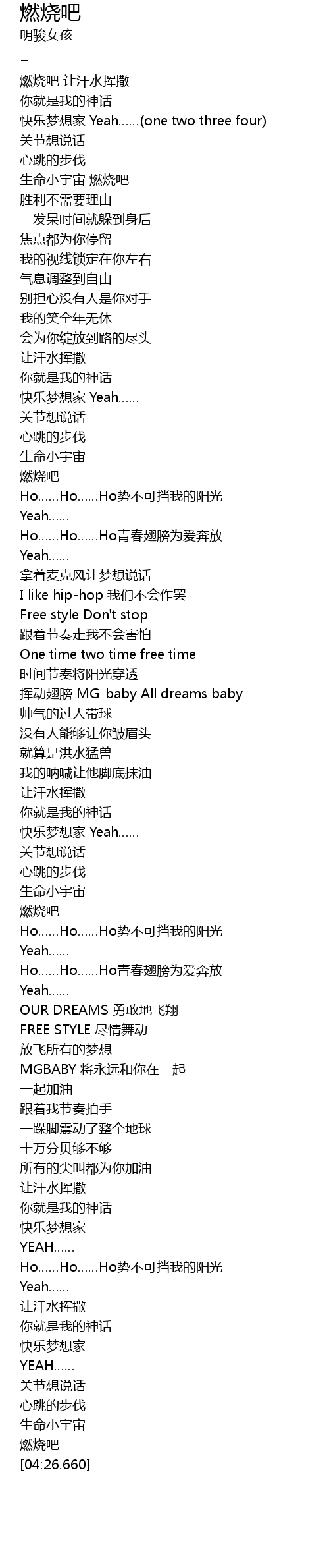 | [04:22.660] | 燃烧吧 |