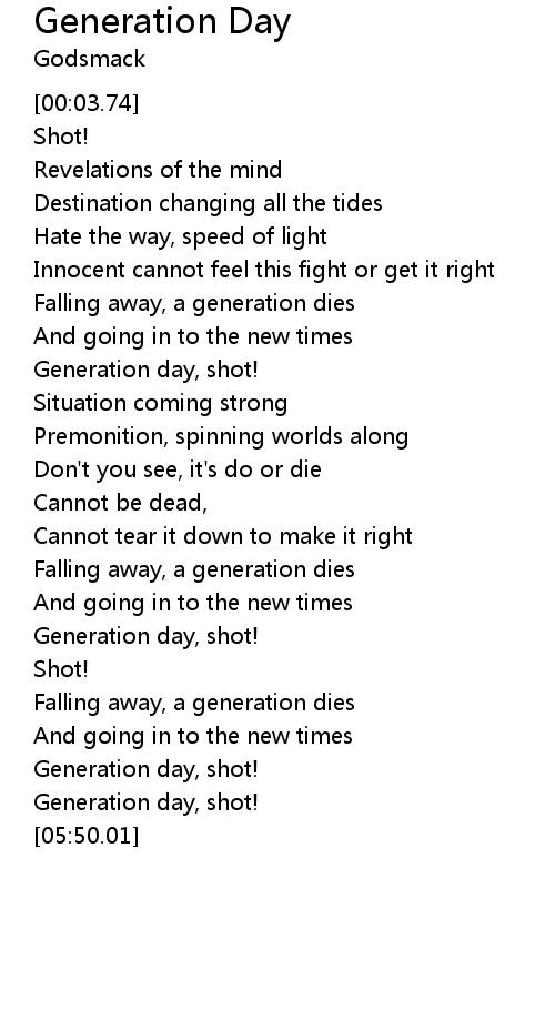 | [02:41.14] | Generation day, shot! |