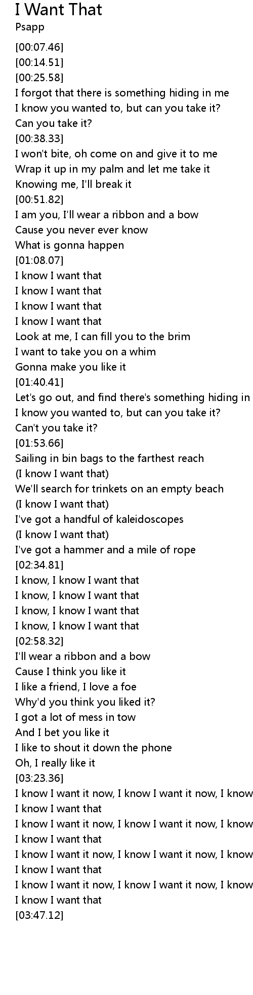| [03:41.16] | I know I want it now, I know I want it now, I know I want it now |