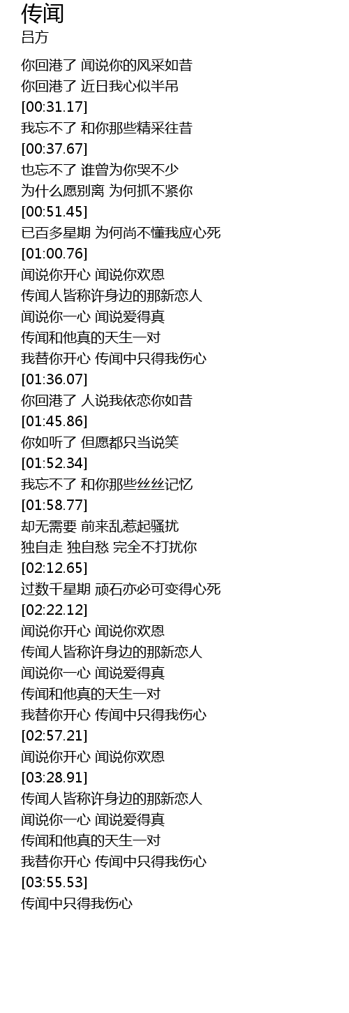 | [03:56.70] | 传闻中只得我伤心 |