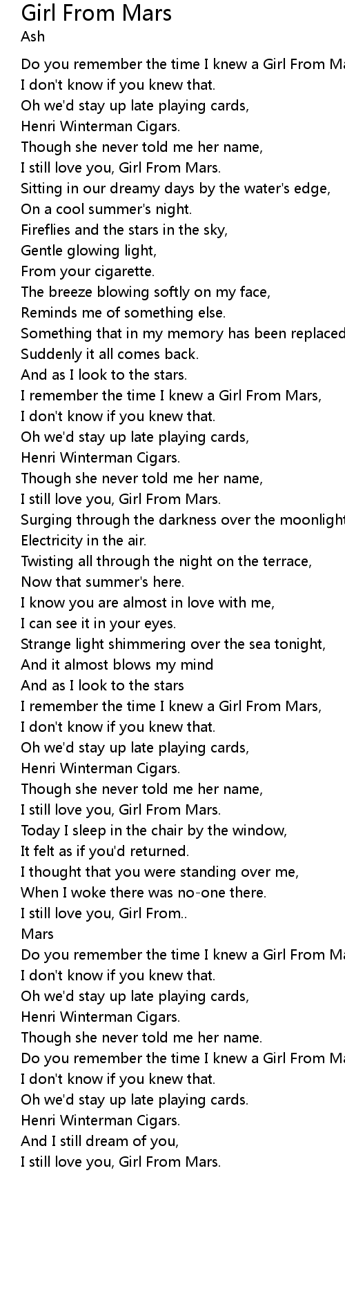 I remember the time I knew a Girl From Mars, |
