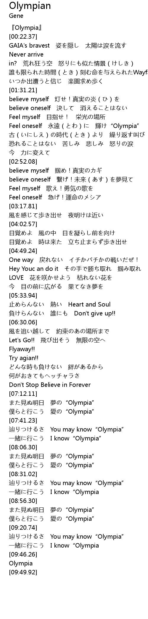 | [09:21.51] | 辿りつけるさ You may know“Olympia” |