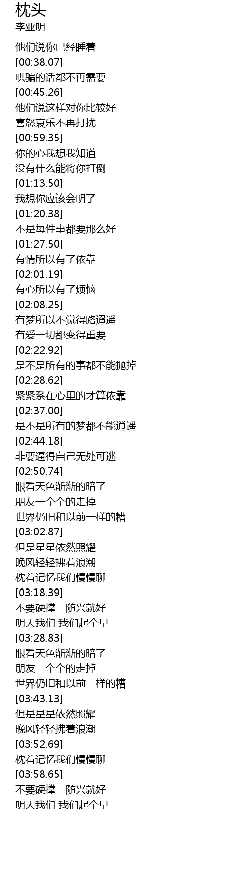 | [03:53.20] | 枕着记忆我们慢慢聊 |
