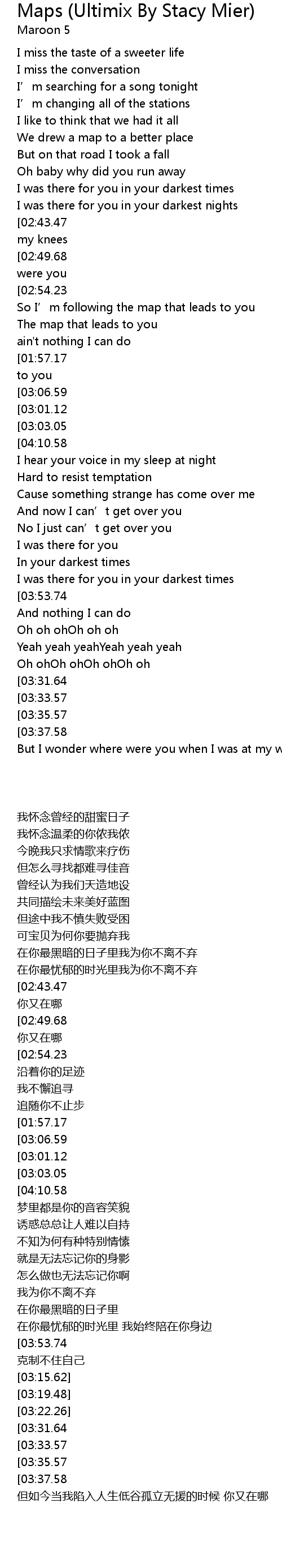 | [02:57.72][03:53.74] | So I’m following the map that leads to you |