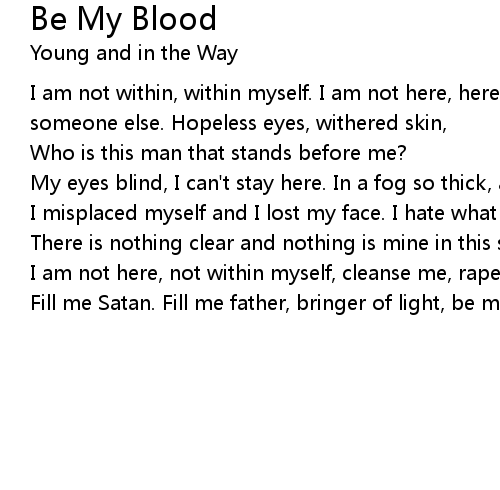 | Fill me Satan. Fill me father, bringer of light, be my blood. |