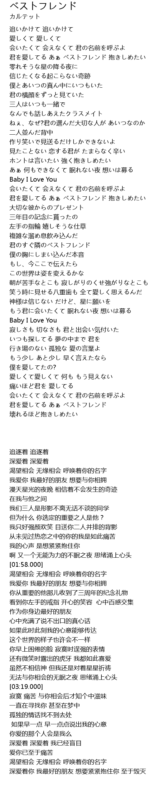 | [04:45.000] | 君を愛してる あぁ ベストフレンド 壊れるほど抱きしめたい |