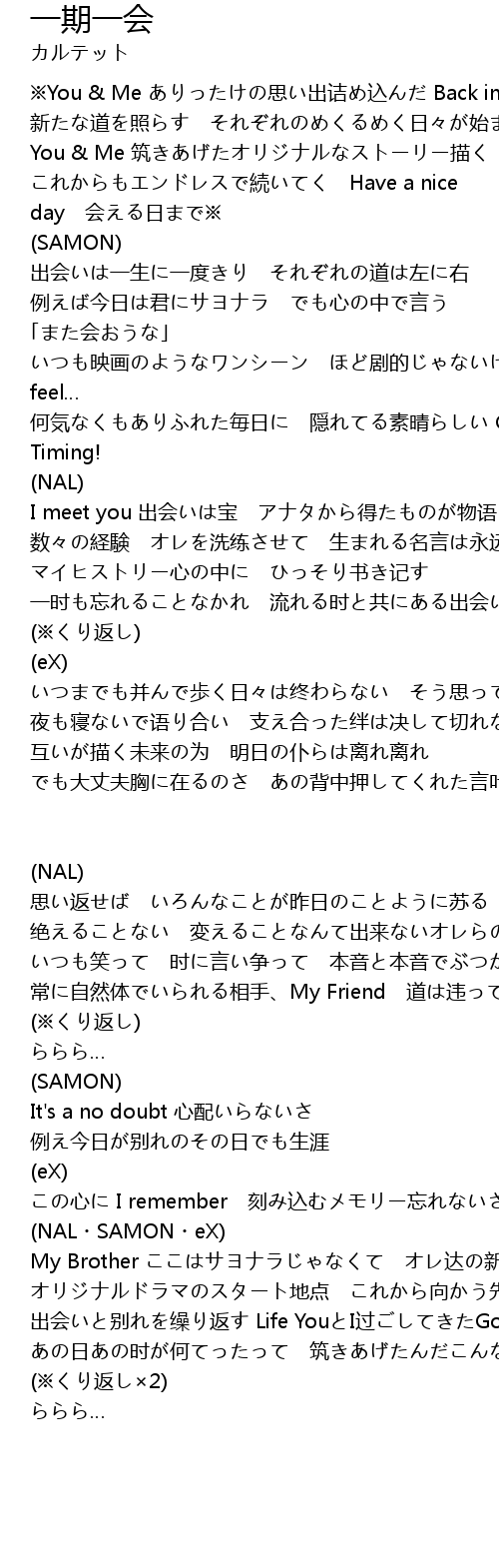 | 绝えることない 変えることなんて出来ないオレらの関系 | |