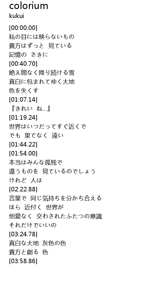 | [00:41.71] | 絶え間なく降り続ける雪 |