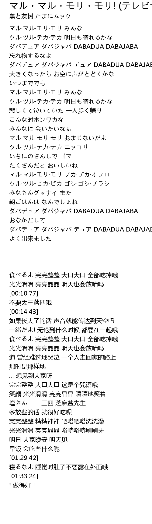 | [00:31.04] | マル·マル·モリ·モリ みんな |