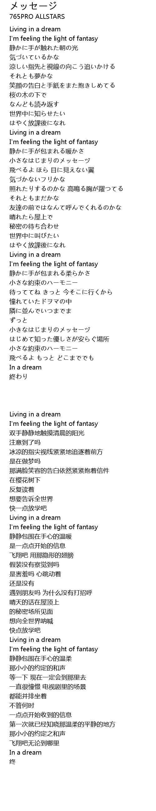 | Song | メッセージ |