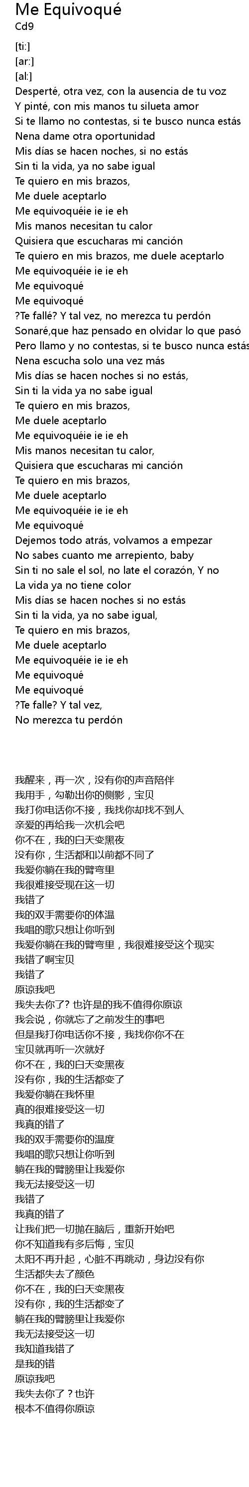 | [00:45.72] | Me equivoqué ie ie ie eh |