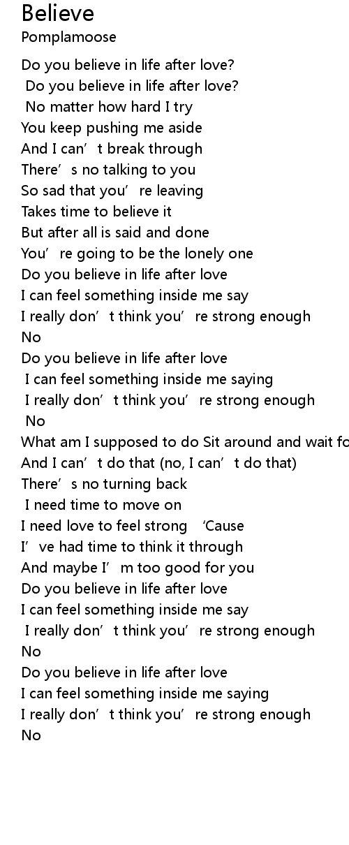 | Do you believe in life after love | |