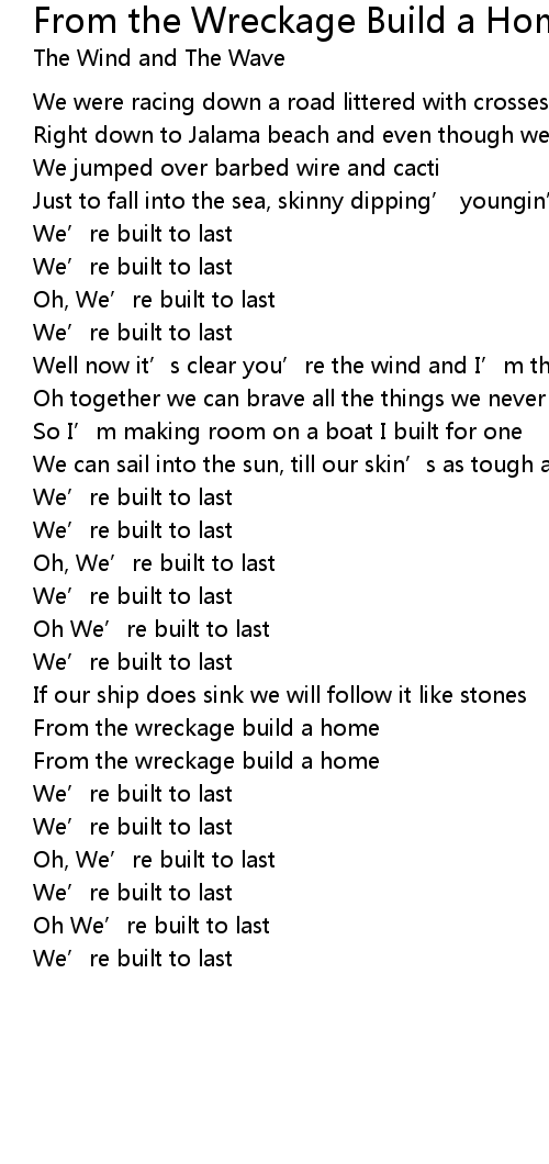 | Song | From the Wreckage Build a Home |