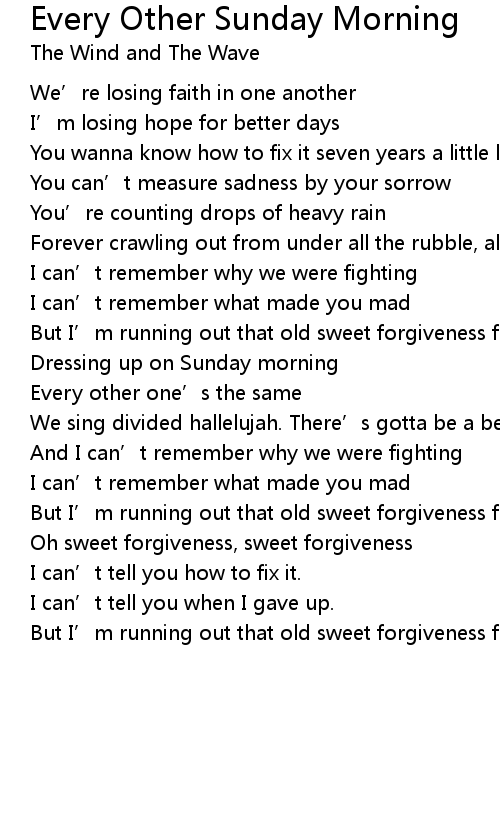 | Song | Every Other Sunday Morning |