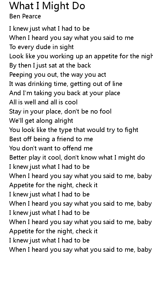 Better play it cool, don't know what I might do |