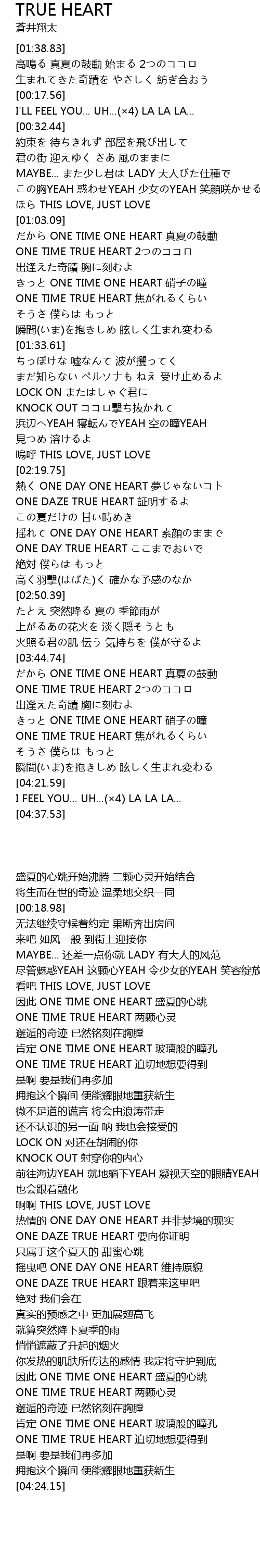 | [01:20.41] | ONE TIME TRUE HEART jiāo |