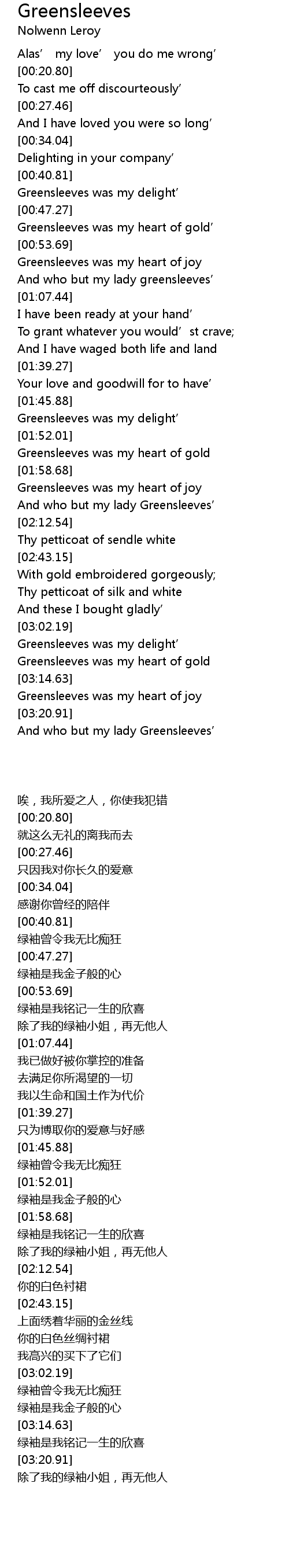 | [03:21.51] | And who but my lady Greensleeves’ |