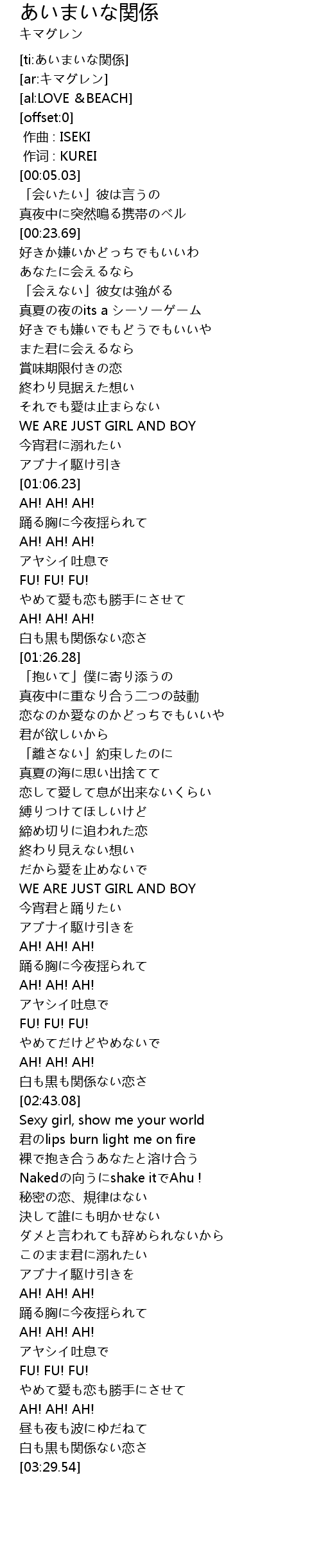 | [ti:あいまいな関係] | |