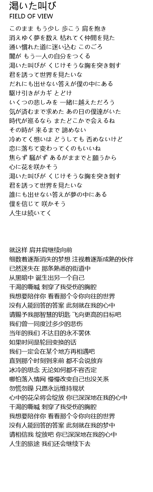 | [03:09.13] | 渇いた叫びが くじけそうな胸を突き刺す |
